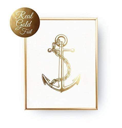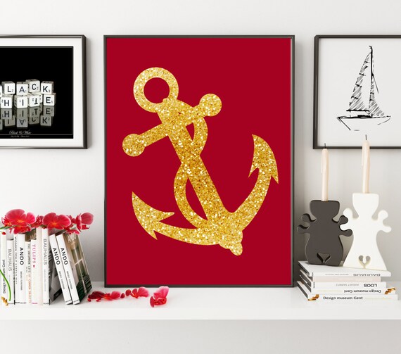 Anchor print, nautical wall decor gold glitter anchor art decor, digital art, glitter anchor printable art print, nautical art.